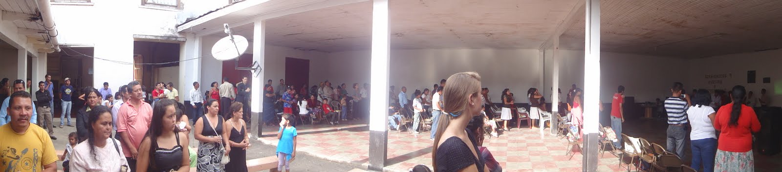 The Church still just has a lean-to next to the house Jonathan rents (for their housing/clothing store) so somehow they were able to borrow the mayor’s office first floor to use for this service, which included guests and well wishers from all the Churches His Eyes supports (Talanga brought a big contingent in Celeo’s packed pick-up, Sampedrana brought the very full Land Cruiser, and nearby San Juancito) plus the band from the Tegucigalpa Church came, plus a full bus of 45 people, the Churches planted in Danli and El Bosque via the His Eyes Talanga Church were there, and even others I did not get to meet.